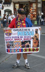 I don’t want to imply that supporting a soccer team is ridiculous as such. It is, however, a social phenomenon that is susceptible to extreme and bizarre behavior, as it tends to produce processes of idolatry. The picture on the left indeed shows that Lionel Messi is treated like a god by some of his fans. I neither want to imply that the unemployment claims made by the Spanish youth at the large square in central Barcelona should not be taken seriously. I just wanted to record how people sometimes ‘strangely’ behave when they’re united against a ‘common enemy’ (in this case ‘the system’).